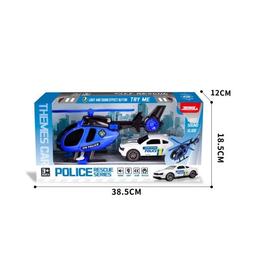 Auto más helicóptero de rescate. El helicóptero tiene sonido, el producto viene con pilas incluidas