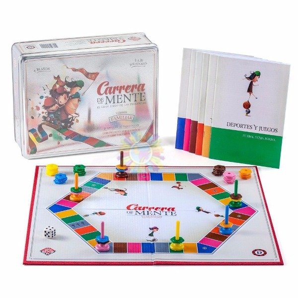 En 2017 nos propusimos un nuevo desafío: una versión innovadora en diseño y calidad. Carrera de Mente Edición Familiar fue producido en caja de hojalata y cuenta con ilustraciones de Pablo Bernasconi. Las preguntas se desarrollaron bajo una nueva modalidad: tienen dos niveles de dificultad y contemplan la posibilidad de que los más chicos respondan sobre contenidos acordes a su generación.