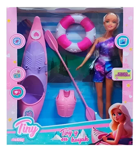 MUÑECA TINY CON KAYAK CHALECO Y SALVAVIDAS