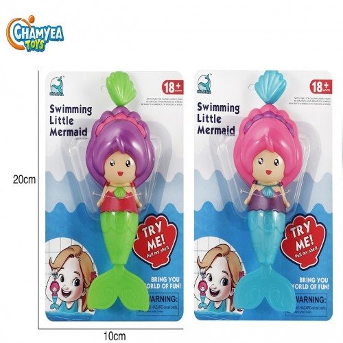 Tira de la cuerda y mira como nada esta tierna sirena. Ideal para jugar en la pile o la bañera.
